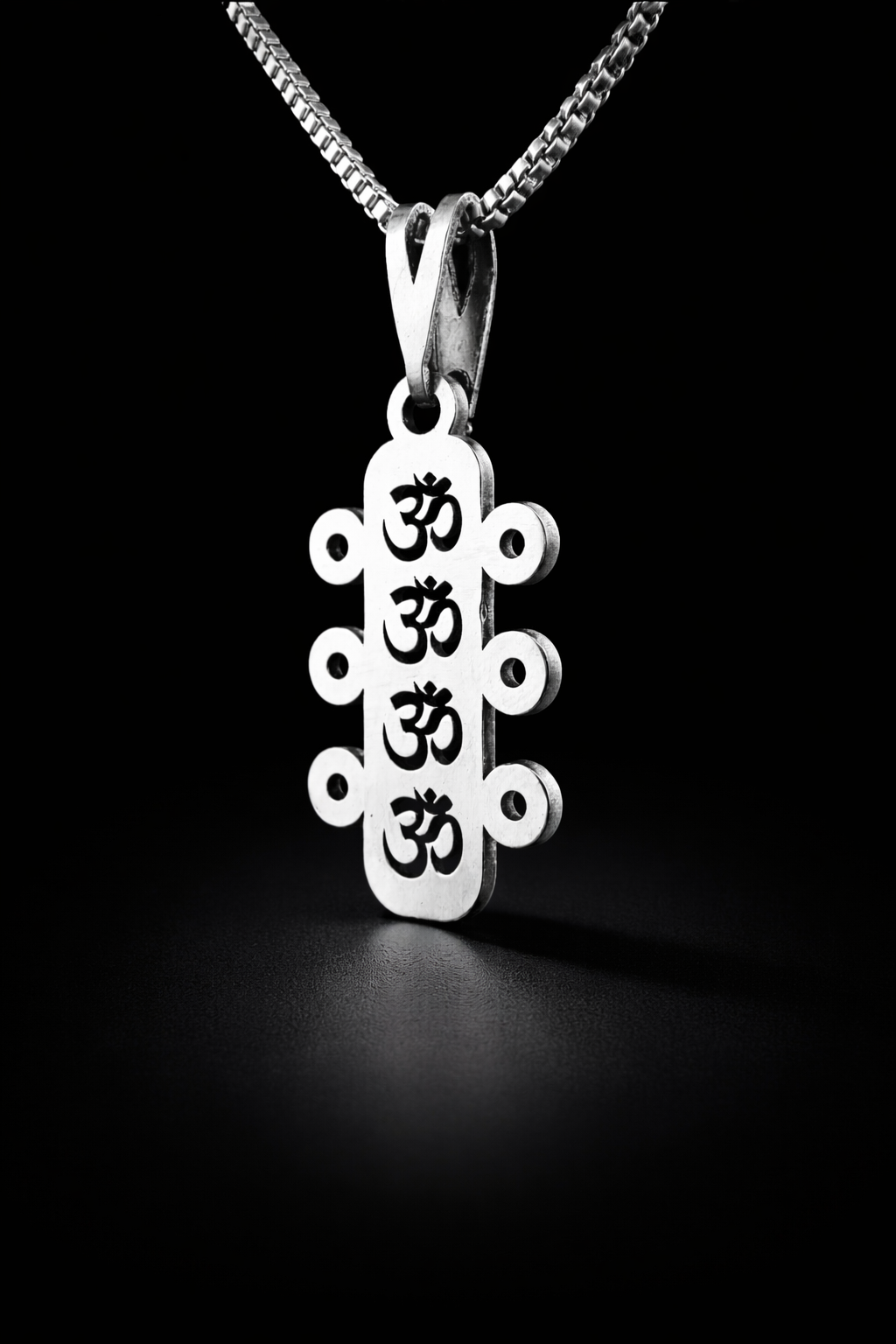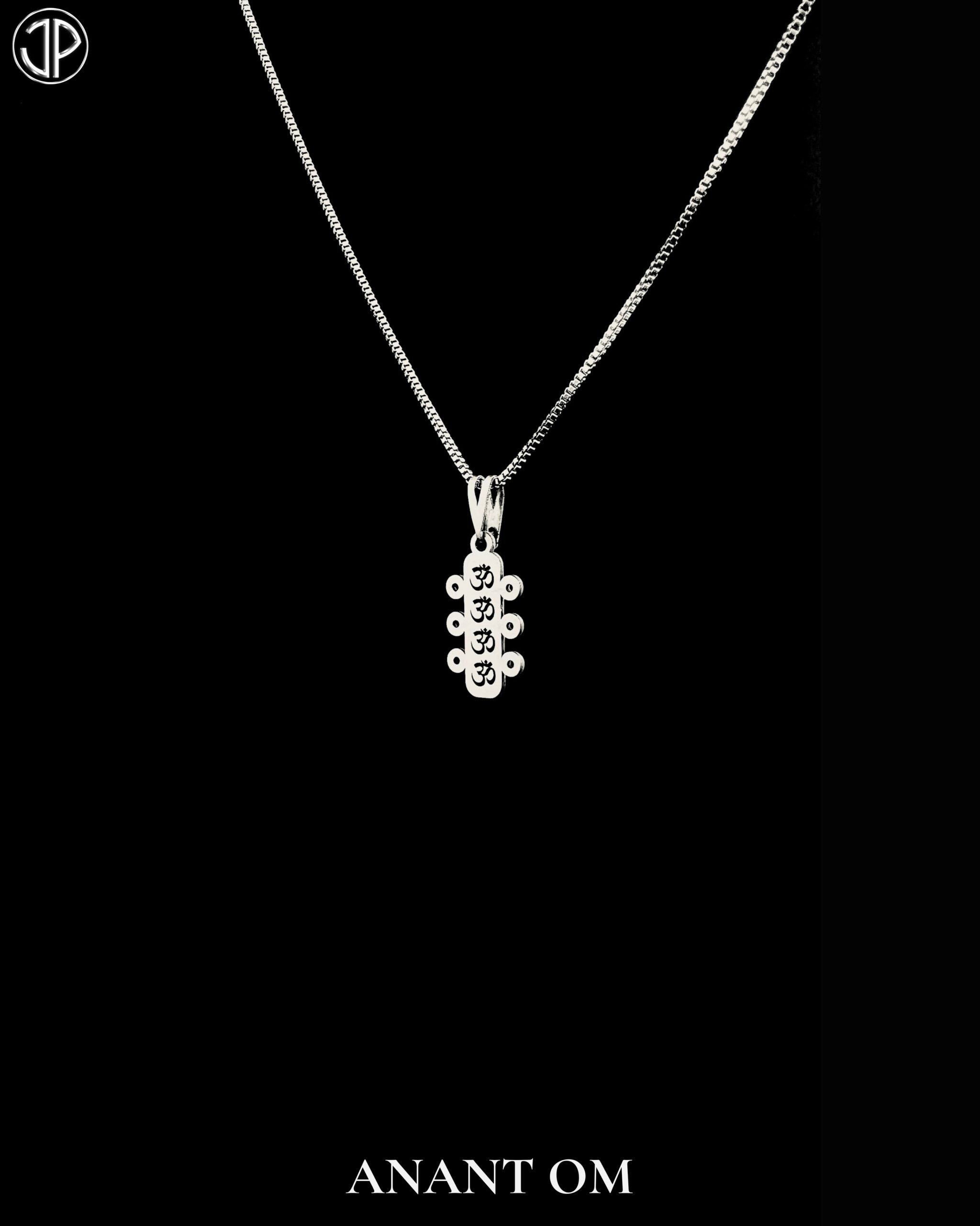 - A harmony of energy and elegance — the 4OM pendant is a modern tribute to the sacred sound Om, representing universal consciousness and inner peace. Thoughtfully crafted in high-quality German silver, this pendant features a sleek, stylized Om symbol enclosed within a geometric frame, reflecting balance in design and spirit.