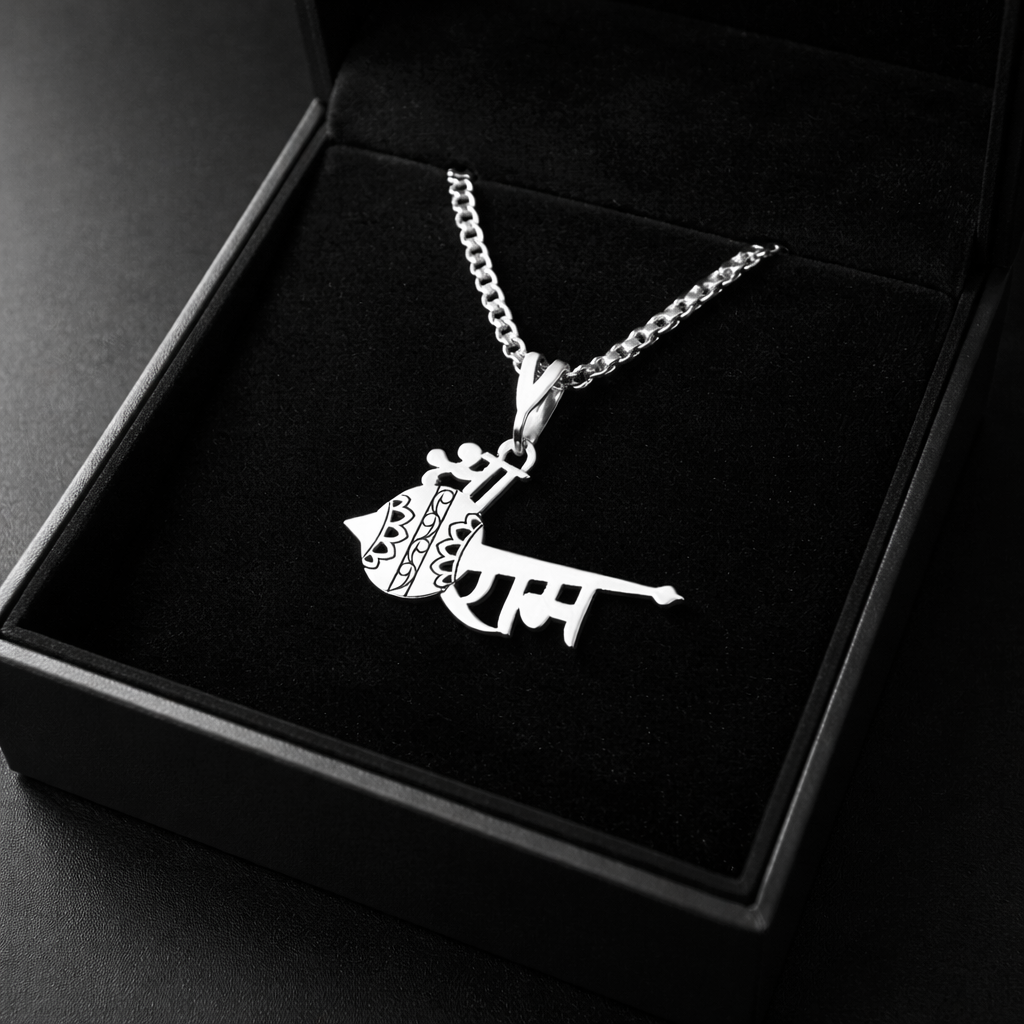 Discover the Shree Ram Strength Pendant, a sacred symbol of devotion, courage, and righteousness. Expertly crafted from premium German silver, this powerful pendant features the divine presence of Lord Shree Ram, embodying truth, strength, and dharma, finished with a radiant, high-polish silver shine. Deeply rooted in Indian spirituality, it represents protection, moral strength, and unwavering faith.